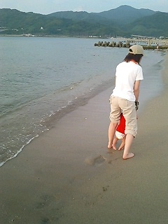 海を波を砂を、触れさせよう感じさせよう!そんな一方的な親のエゴであります。